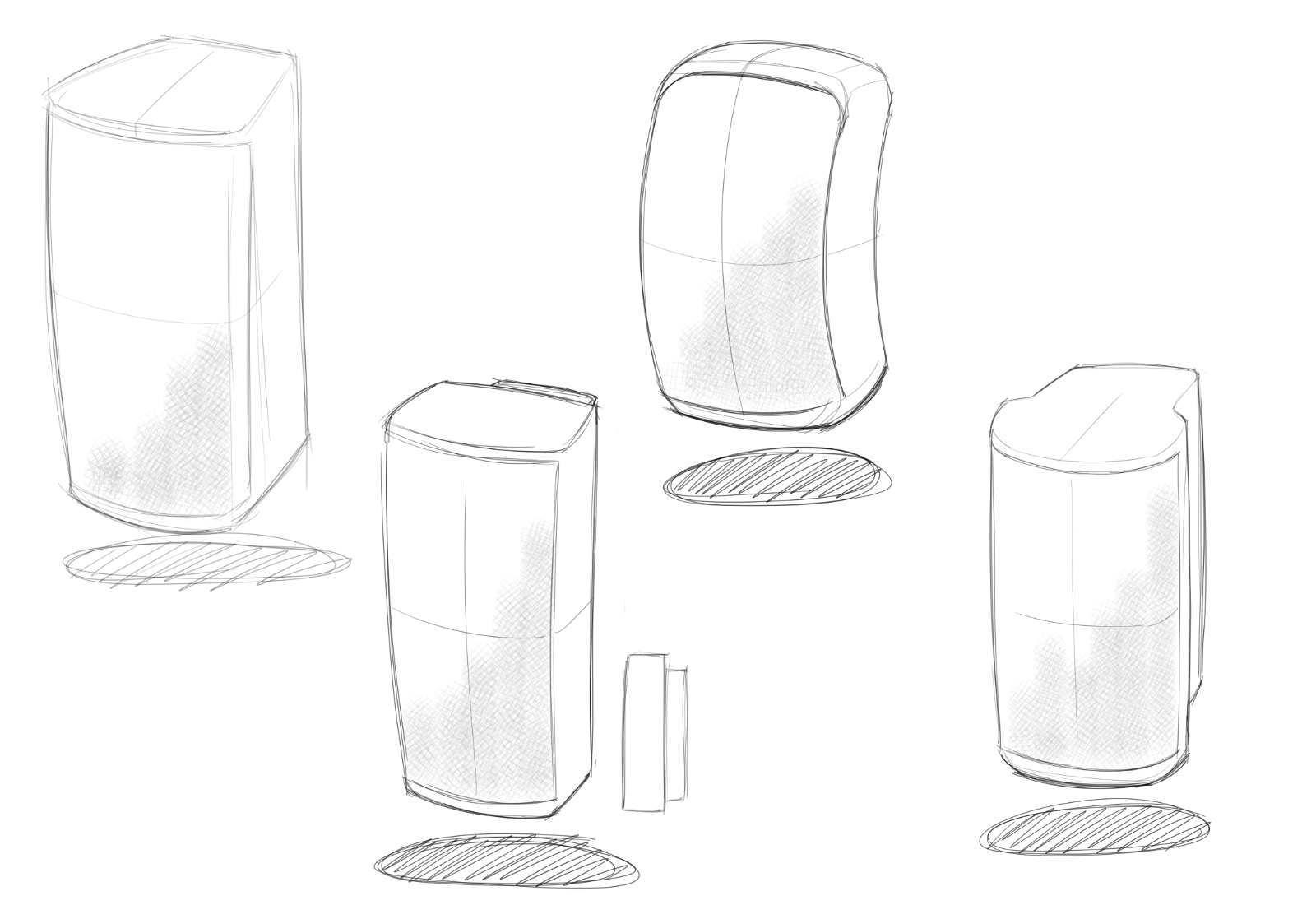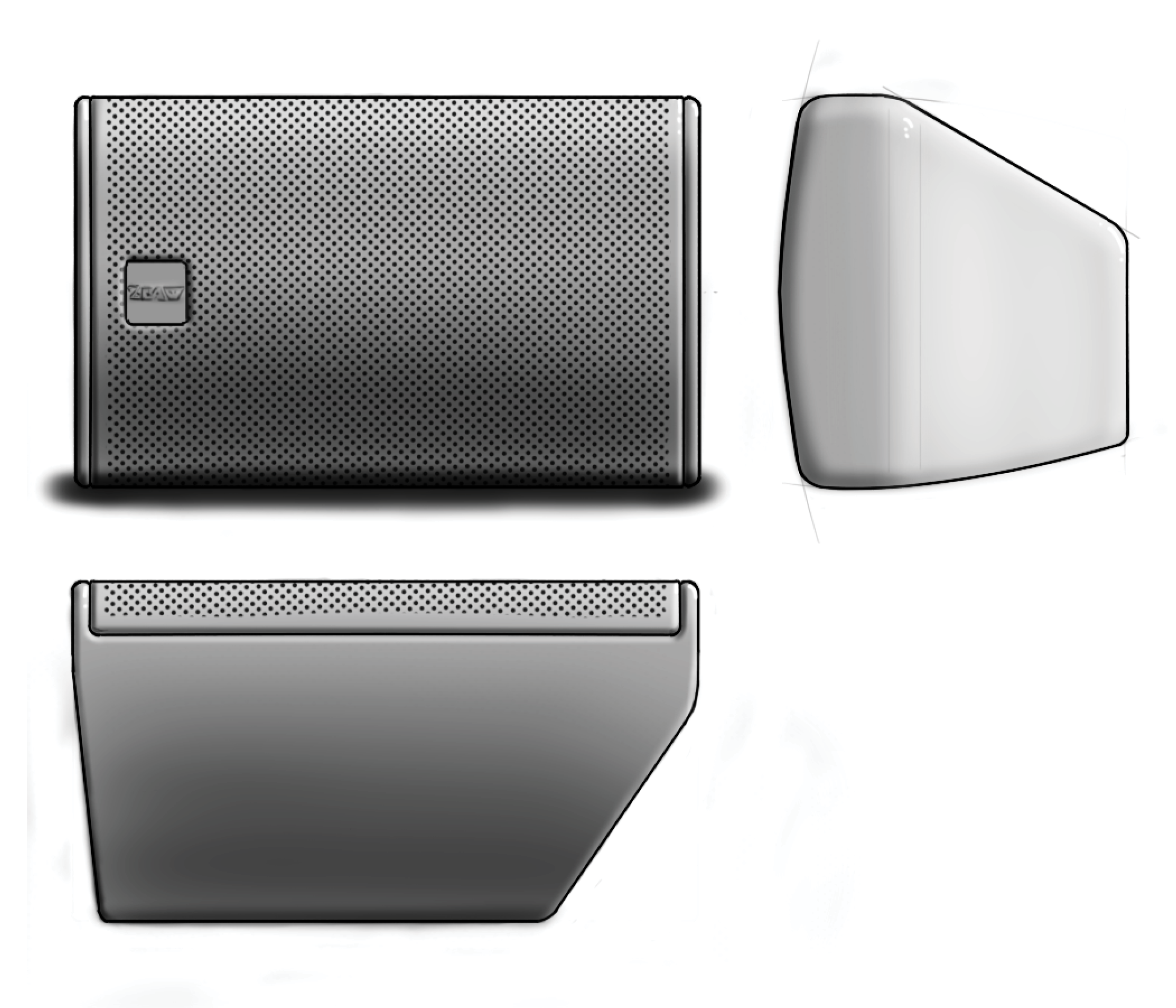 For what would become the EAW MKC speaker series, I developed ID for the cabinet that could work across a variety of sizes, allow the speaker to work in both a vertical and horizontal orientation, mount close to walls and close into corners, and have a new aesthetic. I executed this with a new shape, wrap-around grill, and a faceted design, then worked on integrating components into the cabinets through a CAD build.
